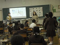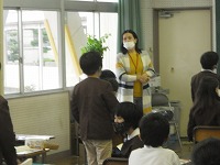 5年生が、英語でいろいろな好きなものについて質問し、答えるという会話に取り組んでいました。これまで、スポーツや動物、果物、教科、食べ物などいろいろなものについて言い方を学習してきているので、みんな積極的に手を挙げて答えていました。