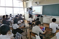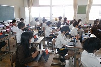 5年生が、家庭学習についての説明を聞いていました。先生から言われた宿題ではなく、自分たちで必要だと感じる内容を計画して行う学習です。