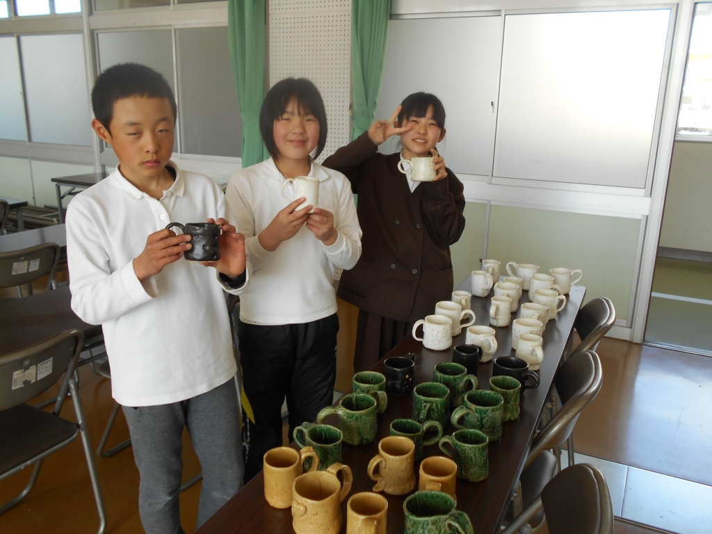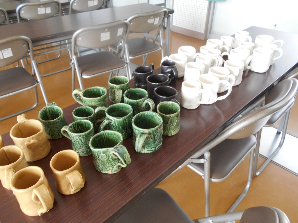 で作った作品が焼き上がりました。自分だけのマグカップや湯飲みです。大切に使ってくださいね。