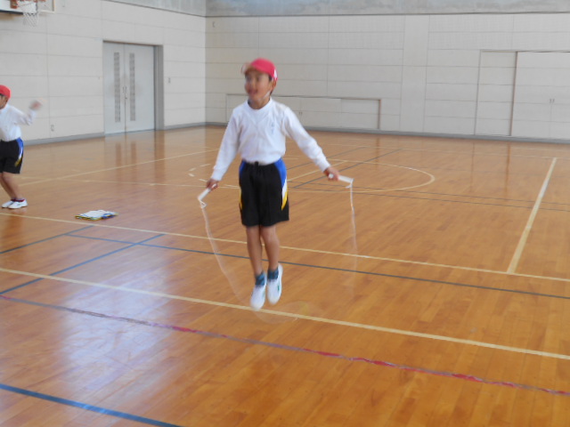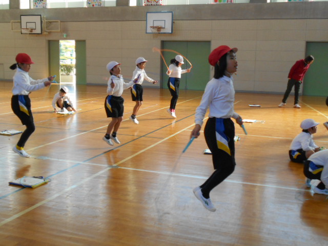 2年生は、縄跳びカードに挑戦です。冬休み中の練習の成果を発揮しました。