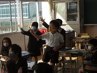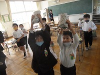 2年生が、先日収穫してから干してあったサツマイモを分けていました。大きなものを新聞紙で包み、先生とじゃんけんをしてもらう順番を決めていました。