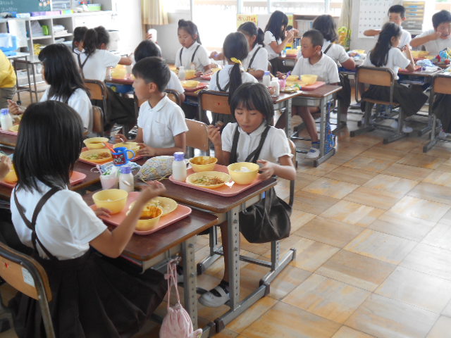 給食を食べられることに感謝していただきました。