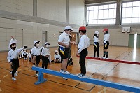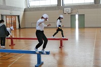 2年生が体育で平均台に取り組んでいました。前向きに進んだり横向きに進んだりといろいろなわたり方に挑戦し、中には元気に走ったり最後にジャンプして下りたりする子もいました。