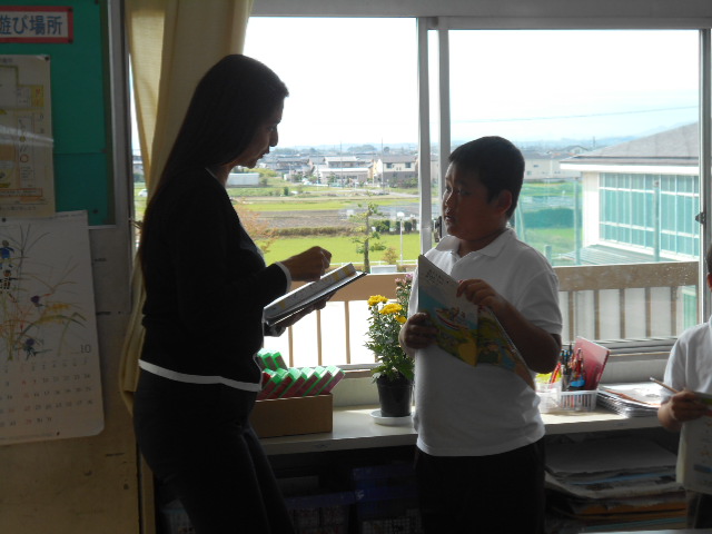 5年生は、英語の勉強をしました。英語で質問をしあい、楽しそうでした。