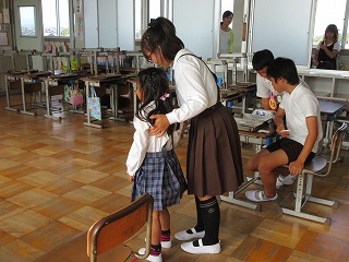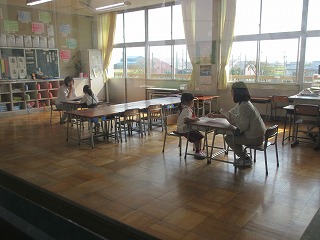 今日は、来年度小学校に入学する園児37名(他校への入学予定者含む)を迎えて、就学時健康診断が行われました。歯科・内科・視力・聴力・知能の検査を行いました。6年生が甲斐甲斐しく世話をしていました。例年は女子だけでしたが、今回は男子も活躍しました。