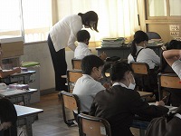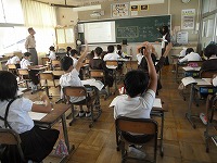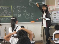 3年生が算数で、何倍かの考え方を、絵を描いたり、関係図を使ったりして確かめていました。全体が先にわかっていて、部分を求めるような、例えば、3×〇=15の「〇」を求める式を説明する図を描いていました。