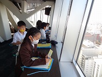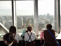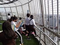 まずは係の人から説明を聞いてからエレベーターでスカイデッキ(展望台:高さ地上90m)に上がりました。