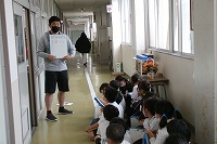 2年生が生活科で、学校を回っていました。新しく入った1年生に学校を紹介するため、自分自身でしっかりと確認するためです。