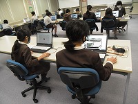 5年生が理科で学習している水の働きについて、コンピューターを使って理解度のチェックテストをしていました。全員が一斉に取り組むことができ、その場で結果が出るので、できなかったところのやり直しもすぐにできます。