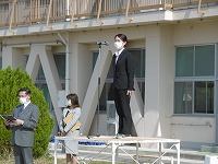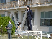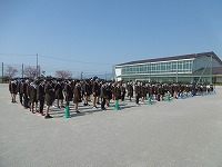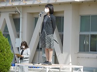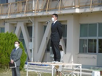 雲一つない良い天気のもと、昨年度まで2年間行わなかった集会を行いました。コロナウイルス感染症拡大防止のため、屋外で間隔を広くして行いました。