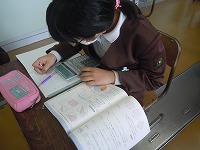 5年生が算数の「平均」の学習で電卓を使っていました。この学習では計算力そのものよりも、平均をどのように利用していくかが重要だからです。