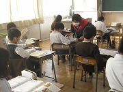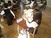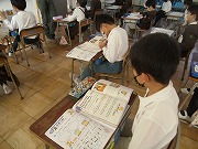 2年生は音楽で「小ぎつね」の歌詞を読んで、難しい言葉などを確認して、イメージをふくらませていました。歌を知っている子が多く、ふつうに文を読んでいるつもりでもついついメロディーになってしまいがちでした。