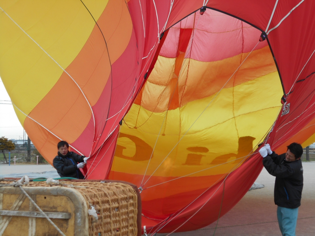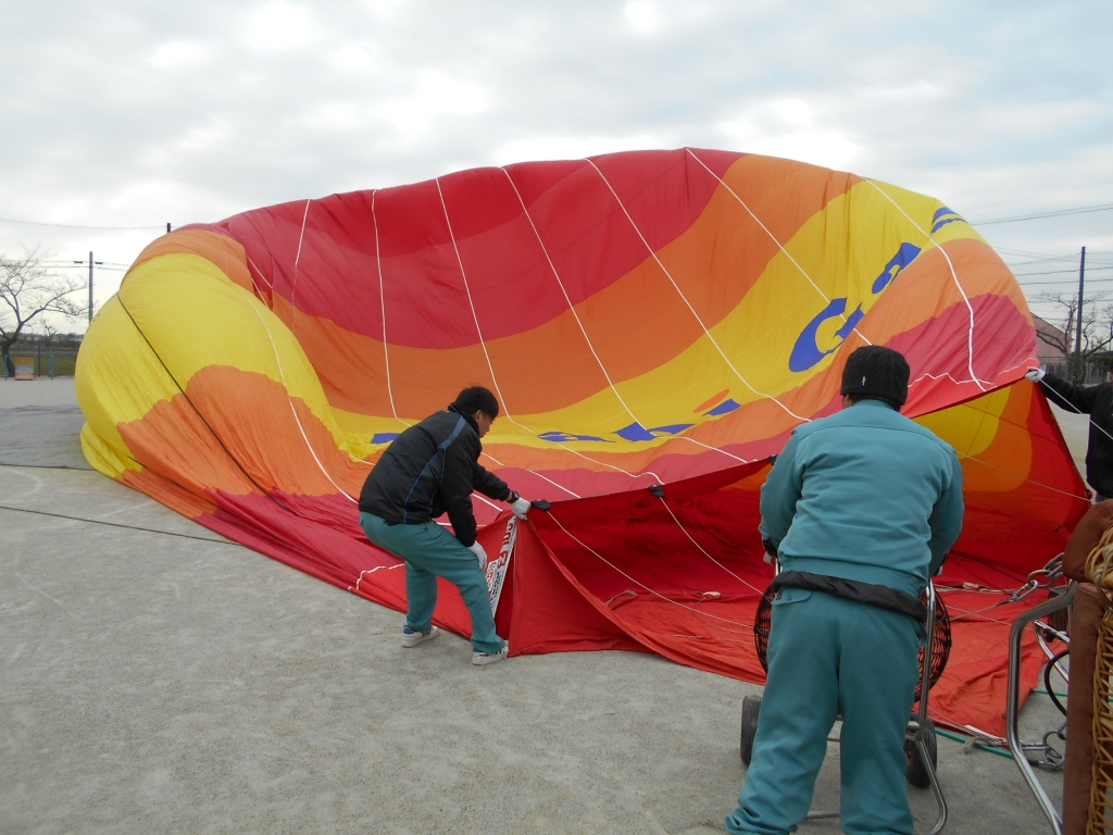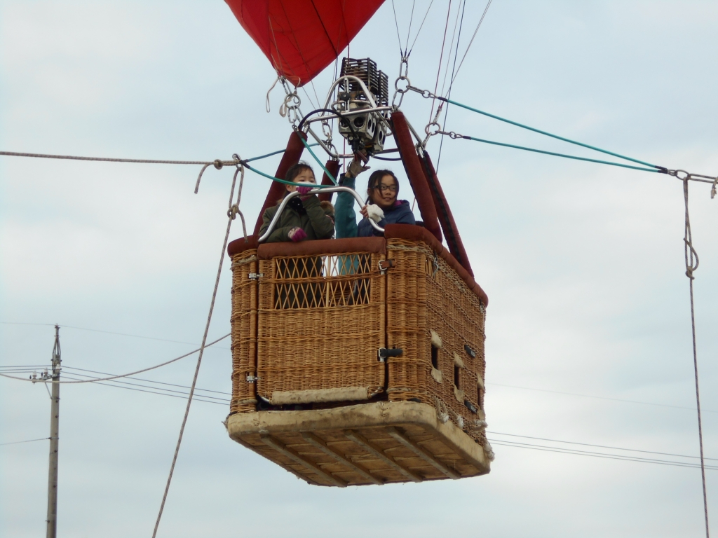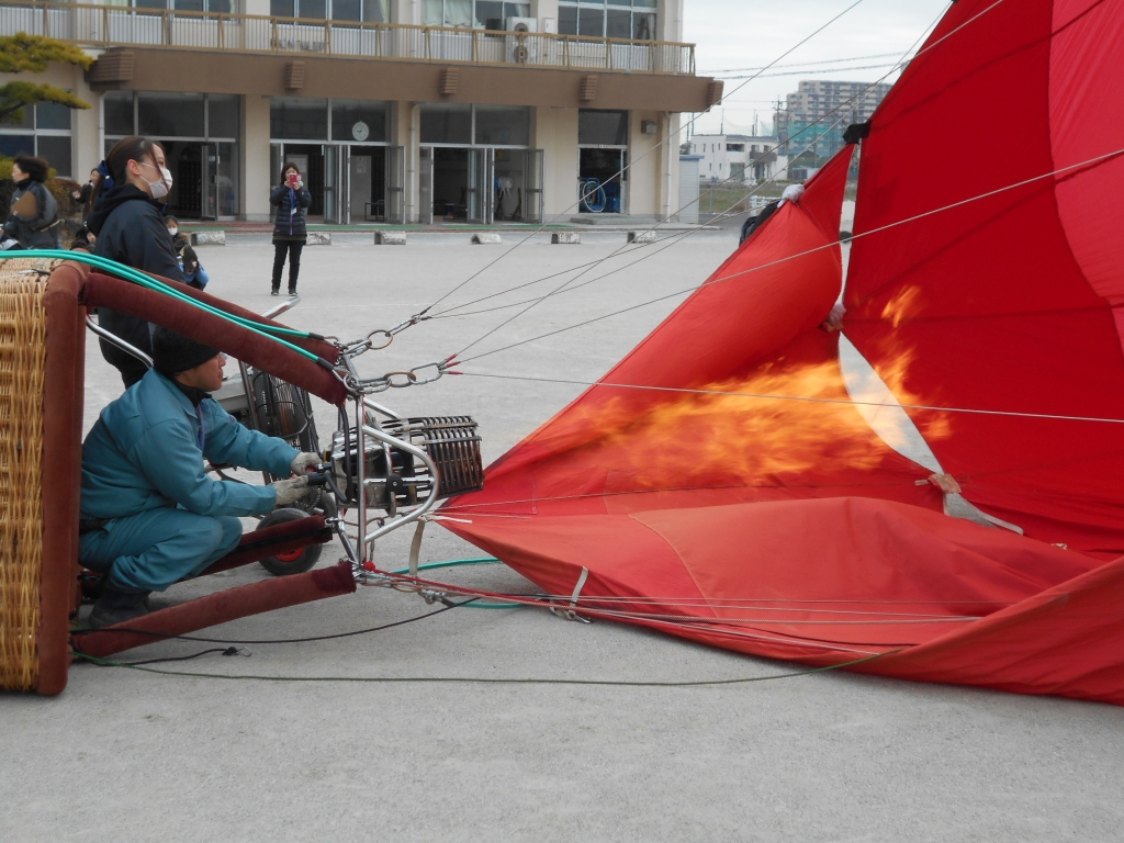 熱気球体験がありました。朝、8時半ごろは、風があり、気球に乗ることは無理かもしれないと危ぶまれましたが、4年生が全員体験することができました。