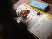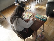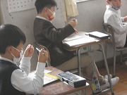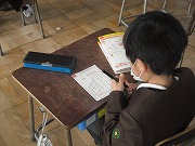 2年生が国語で、年賀状を書いていました。はがきの書き方の学習も兼ねて、年賀状を出したい相手を考えて、絵や文章を書きました。下書きで練習した後、丁寧に書いていましたが、あて名や住所を限られたスペースに書くのが難しそうでした。