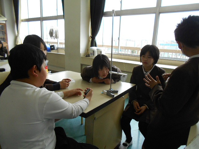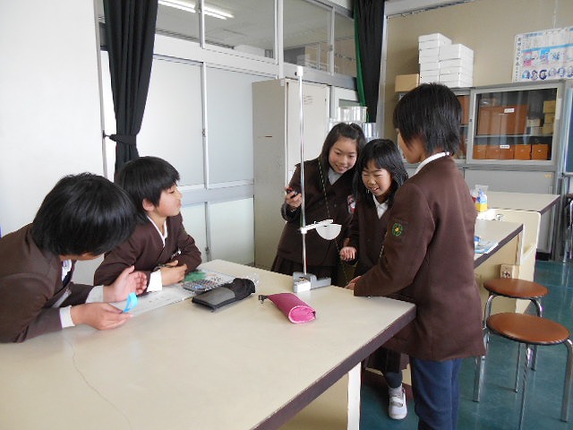 5年生は、理科の学習で、ふりこの1往復する時間は、ふりこの長さ、おもりの重さ、ふれ幅によって変わるかどうかを調べました。