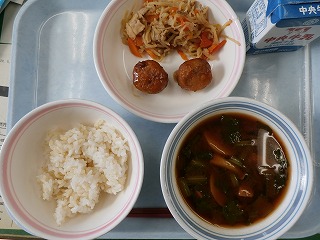 金芽ロウカット玄米ご飯 牛乳 愛知のレンコン入りつくね 切干大根の炒め煮 具だくさんの味噌汁