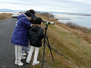 みんなで望遠鏡をのぞいて、野鳥を観察しました。