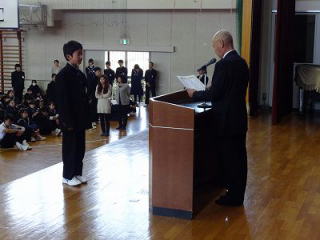 | 今日は朝礼がありました。 まず第37回海部地区造形作品展の表彰伝達を行いました。 次に校長先生からのお話がありました。話の内容は水曜日からテストがあるので、甘い誘惑に負けず、勉強に励むようにといったものでした。 次に佐橋先生からのお話がありました。1日25時間あったら1時間を何に使うかという投げかけから始まり、一日は1440分あるので、1%の15分だけでも集中して時間を大切にしようという話でした。 今週は水曜日からテストが始まります。悔いの残らないようにしっかり備えて、テストに臨んでほしいと思います。 |
