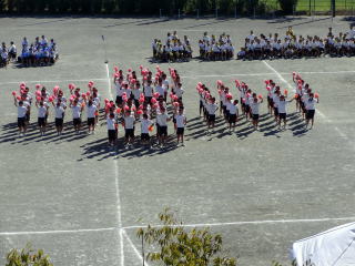 今日は体育祭がありました。午後から各群団のマスゲームの発表がありました。強風の中でしたが、どの群団もすばらしい演技を披露してくれました。