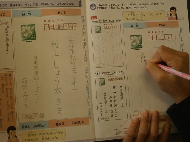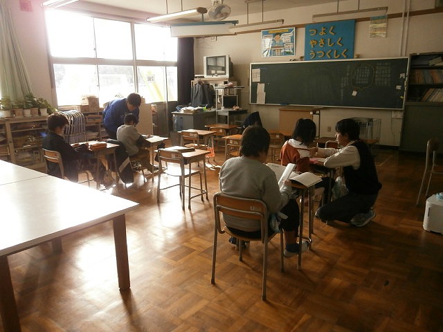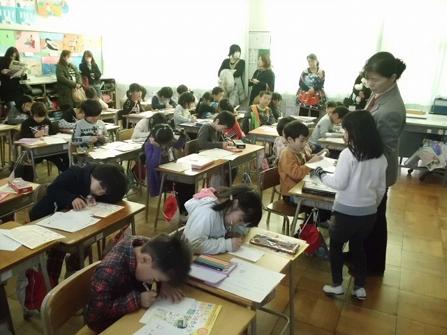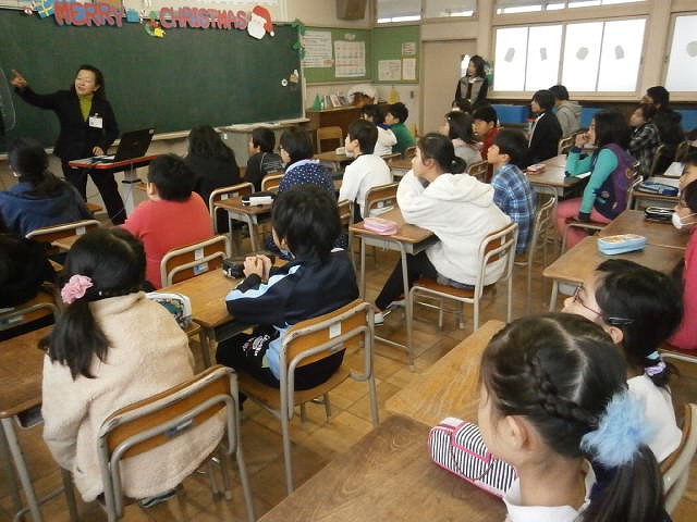 表彰は、赤い羽根作品コンクールのポスターと習字で、6年の高尾さんと内藤くんを表彰しました。次に、ホタルの観測紹介ポスター作成お礼に6年の笹本さんをはじめ8名に感謝状を渡しました。最後は、生徒指導について林先生からのお話です。特に、交通事故に気をつけるようにと具体的な事故件数や事故にあった人の数を示しながら話されました。子どもたちは大きな数字が出てくると「ワーッ。」と歓声があがるほどです。交通事故死亡事故ワースト1の愛知県です。自分の自分の命を守る! 冬休み中も、特に気をつけるようご家庭でも話してください。