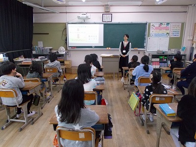 5年生の栄養指導がありました。私たちの主食であるお米に関することがメインでした。「八十八」もの手間をかけて作られる作物だから「米」という漢字になったというお話を交えつつ、お米のもつ食品として優れた点をたくさんお話いていただきました。
