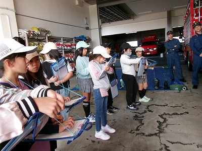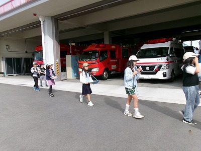 今日、3年生は社会科の学習の一環で、愛西市消防署本署へ見学に行きました。