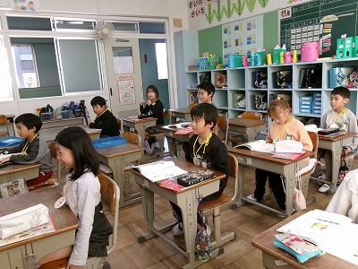2年生の5時間目の様子です。みんな、首からメダルをかけています。