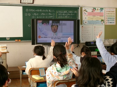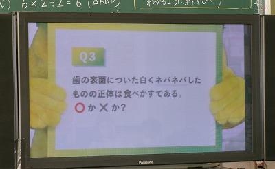 5年生は、体重測定の後、「全国小学生歯みがき大会」に参加しました。DVDを視聴しながら、クイズや実習を通して