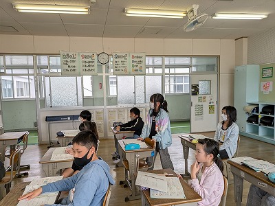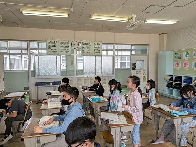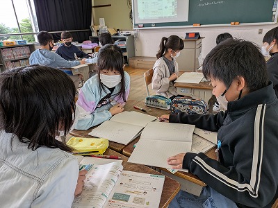 5年松組の算数の様子です。小数のかけ算の仕方の学習をしていました。