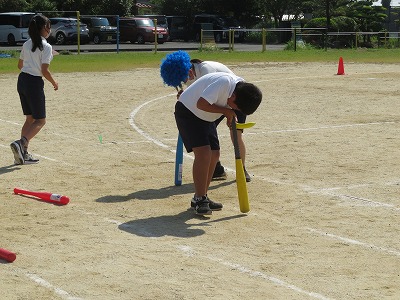 参加希望者を募って行われる児童会企画種目「この指とまレース」の練習が行われました。今日はさらに前回の練習よりも障害物も増え、本番さながらに競技の流れを確認することができました。