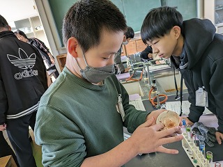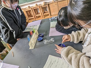 蒸発皿に残った粉を塩酸に溶かす」などの実験をしました。