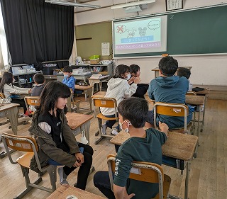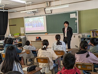 5年松組、6年松組、それぞれで授業をしていただきました。授業では、みんな、とても楽しそうでした。「中学校って、どんなところ?」「なりたい自分になる」というテーマで授業をしていただきました。ありがとうございました。