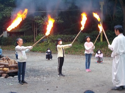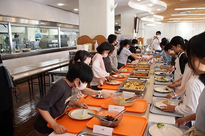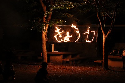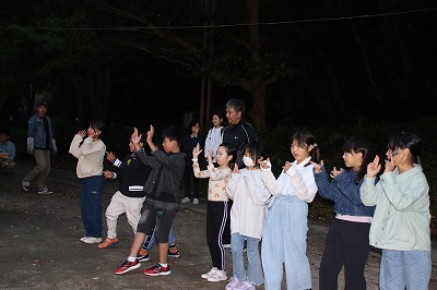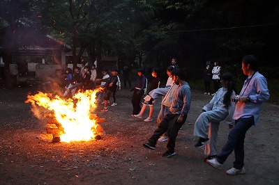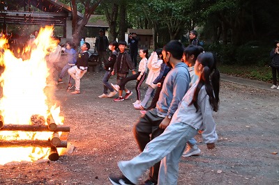 夕飯は食堂でバイキングです。おなかいっぱい食べて、いよいよ立北小と合同のキャンプファイアーです。それぞれの出し物を行って、友情を深めました。