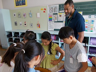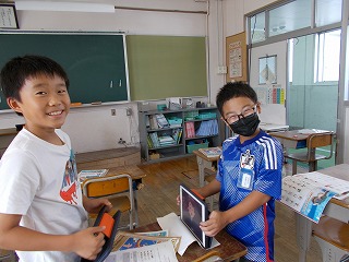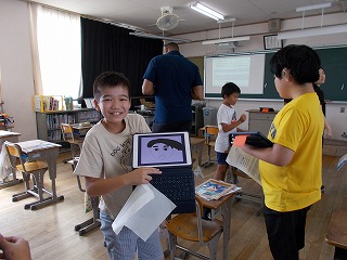 5年生の外国語の授業では、「身近な人やキャラクター、好きな有名人などを紹介しあって、おたがいのことをよく知ろう」という授業でした。自分が紹介したい人物やキャラクターをタブレット端末に映し出して、それを見せながら英語で紹介します。