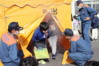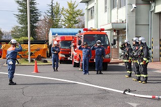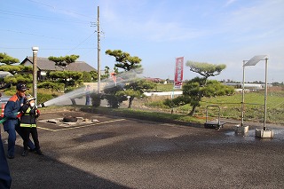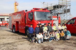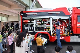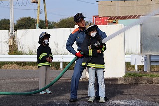 消防服を着せていただき、放水体験をしたり、煙体験をしたり、消防署の方が訓練する様子を見せていただいたりしました。充実した見学でした。