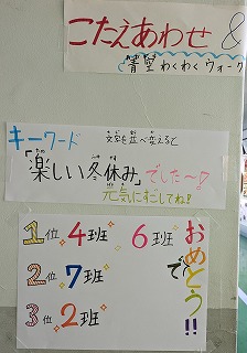 18日(月)に行った保健委員会による「青空わくわくウォークラリー2023冬」の答えが、会議室前に掲示してあります。