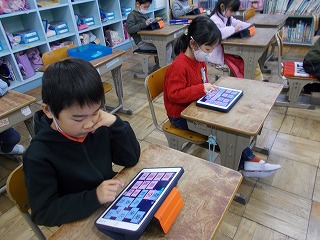 2年松組の国語の授業の様子です。2年生の新出漢字の学習が終わったので、学習した漢字を組み合わせてクイズを作りました。問題は、ロイロノートというアプリで作成しました。グループごとでほかの人が作った問題を解きます。さあ、何問正解できるのでしょうか…。