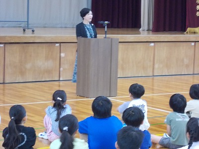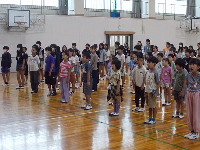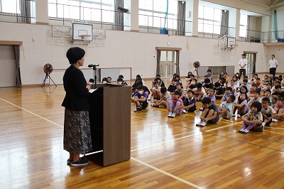 今日で前期が終業します。朝に前期終業の会が体育館で行われました。校長先生から、「うれしいがんばり」「ありがとうを言おう」「かしこくなろう」という3つのお話がありました。