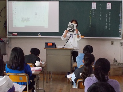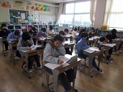 人権週間の取組の一環として、5年生の道徳では「モントゴメリーのバス」を資料として授業を行いました。今から約70年ほど前、白人による黒人への差別が見られたアメリカにおいて、一人の女性に起きた事件とそれを機に差別をなくそうと立ち上がったキング牧師をはじめとする黒人の人たちの活動とその非暴力の考え方に触れました。