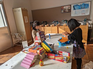 おうちの方には、たくさんの箱を用意してくださり、ありがとうございました。子どもたちは、とても喜んで作品づくりができました。
