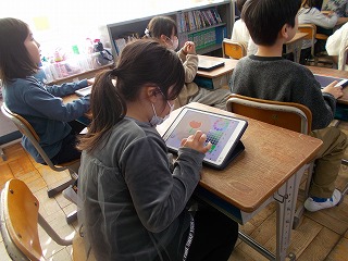 2年松組の授業の様子です。ICT支援員の方に来ていただき、「ビスケット(viscuit)」というアプリを使ってプログラミングの学習をしました。1から9までの数字をつくり、2つを組み合わせて、たすと10になると正解マークが出るようなプログラムを作成しました。それぞれ自分がつくったプログラムをやってみて、うまく動くと教室のあちらこちらから「やったー!」「できたよ!」という声が…。
