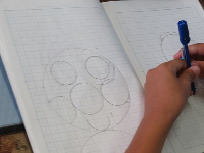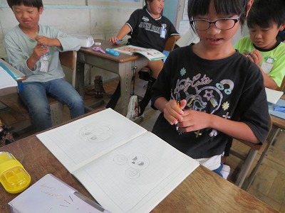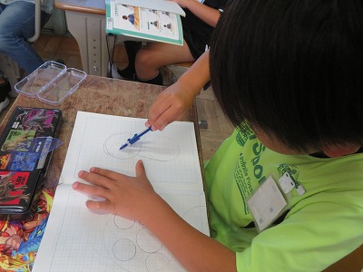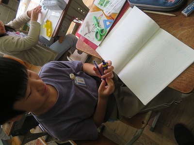 3年生の算数では、みなで楽しそうにお絵かきタイムかな?いやいや、どの子も「コンパス」を使って、大小いろいろな円をかき、模様や絵にして楽しんでいるようでした。楽しみながらも、コンパスの使い方にどんどん慣れていくのを感じました。使いながら「コツ」をつかんでいきましょう。