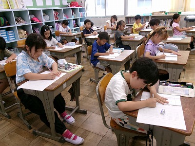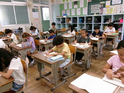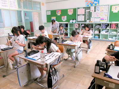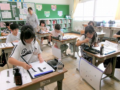 2年生と3年生の書写の様子です。書写コンクールに向けて練習をしています。丁寧にお手本を見ながら練習しています。
