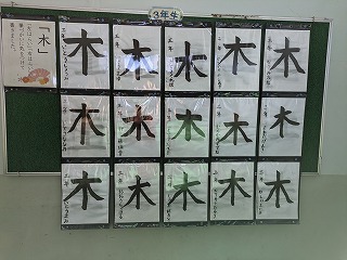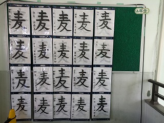 3年生、4年生の掲示板です。今は、習字の作品が掲示されています。