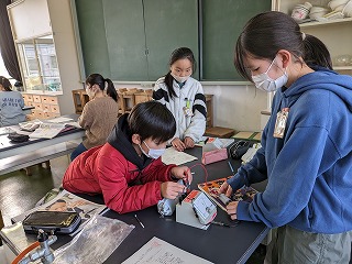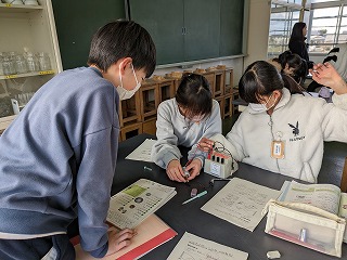 5年松組の理科の授業の様子です。「電磁石の性質を調べよう」という学習内容でした。各グループごとに実験をして、その結果をまとめています。分からないところは、その都度、先生に質問していきます。