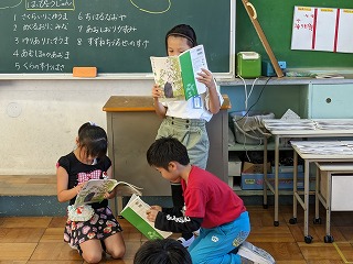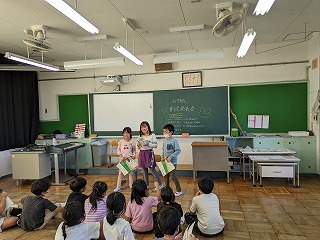 2年松組の国語の授業の様子です。「お手紙」の音読発表会をしました。人物の様子や気持ちの変化を想像しながら、それぞれのグループで音読を行いました。読む場面も、グループごとに決めました。ジェスチャーや動きあり、登場人物の気持ちを表していました。それぞれのグループで工夫が見られ、音読を聞いていて登場人物の気持ちが伝わってきました。