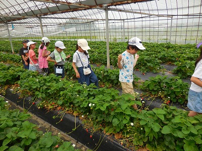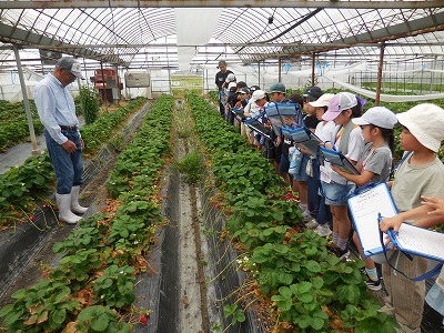 2年生は、昨年もお世話になったいちご農家さんのところへ見学に行きました。