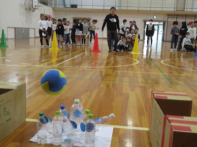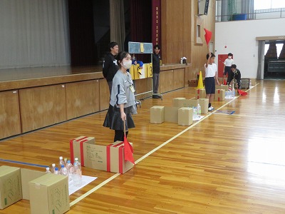 青空の2チーム合同班対抗の「ペットボトルボウリング大会」が始まりました!