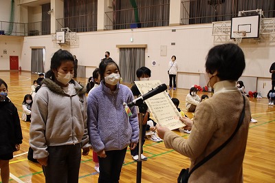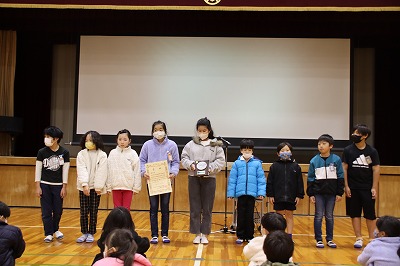 書写コンクールの表彰と、FBC(フラワーブラボーコンテスト)の表彰がありました。FBCでは、今年度は「中部善意銀行賞」をいただきました。
