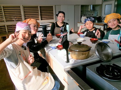 今日は立南っ子サポーターの方4名にお越しいただき、ごはんとみそ汁の調理実習を行いました。